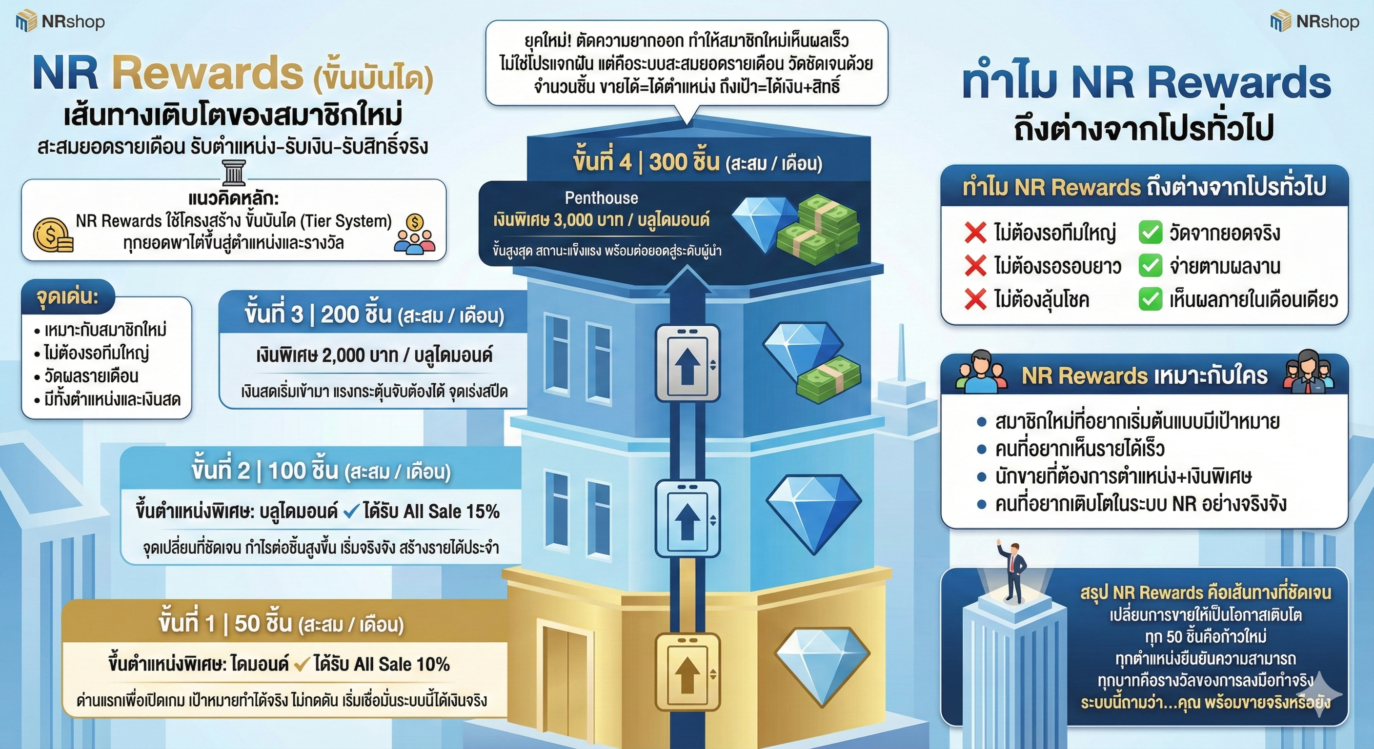 🔥 NR Rewards เปิดทางรวยสำหรับสมาชิกใหม่ 🔥 ขายวันนี้ = ได้ตำแหน่ง + ได้เงินภายในเดือนเดียว นี่ไม่ใช่โปรที่ต้องรอทีม ไม่ต้องรอปี ไม่ต้องรอโชค แต่คือโปรที่วัดกันตรง ๆ ด้วย “จำนวนชิ้นที่คุณขายได้จริง” 📈 สะสมยอด / เดือน รับรางวัลทันที 💎 50 ชิ้น ➡️ ขึ้นตำแหน่ง ไดมอนด์ ➡️ รับ All Sale 10% 💠 100 ชิ้น ➡️ ขึ้นตำแหน่ง บลูไดมอนด์ ➡️ รับ All Sale 15% 💰 200 ชิ้น ➡️ เงินพิเศษ 2,000 บาท (บลูไดมอนด์) 🏆 300 ชิ้น ➡️ เงินพิเศษ 3,000 บาท (บลูไดมอนด์) ⏰ ถามตัวเองให้ชัด เดือนนี้ขายถึง 50 ชิ้นไหม อีกกี่ออเดอร์จะได้ตำแหน่ง อีกกี่ชิ้น เงินพิเศษจะเข้า ทุกชิ้นที่คุณขาย ไม่ใช่แค่กำไรจากสินค้า แต่กำลัง “พาคุณไต่ขั้นบันไดรายได้” 📌 NR Rewards (ขั้นบันได) โปรนี้ไม่ได้ให้กับคนที่คิด แต่ให้กับคนที่ “ลงมือปิดจริง” 👉 รีบปิดโปรภายในเดือนนี้ 👉 เพราะยอดรีเซ็ต แต่โอกาสไม่รอใคร
